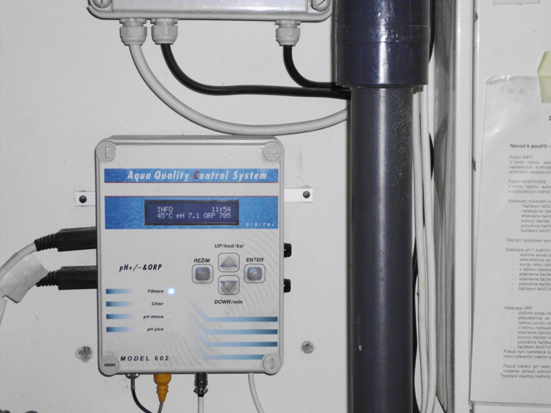 Stanice pH / ORP reguluje hodnoty pH a ORP v bazénu spínáním dávkovacích čerpadel pro bazénovou chemii v závislosti na naměřených hodnotách.